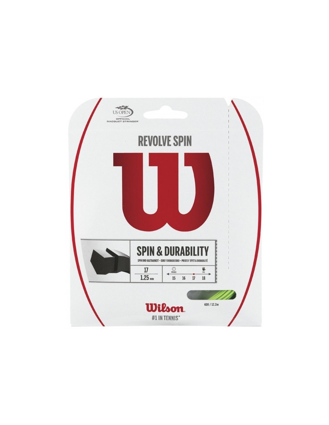 Wilson Revolve Spin is een snaar met een hoge duurzaamheid. Daarnaast is deze snaar bijzonder goed geschikt voor spin en powerballen. Wilson Revolve Spin maakt gebruik van een UHMW coating, deze coating zorgt ervoor dat de snaren vrij kunnen bewegen maar ook gemakkelijk weer terug op hun plek bewegen. Dit bevorderd het spelen met spin.