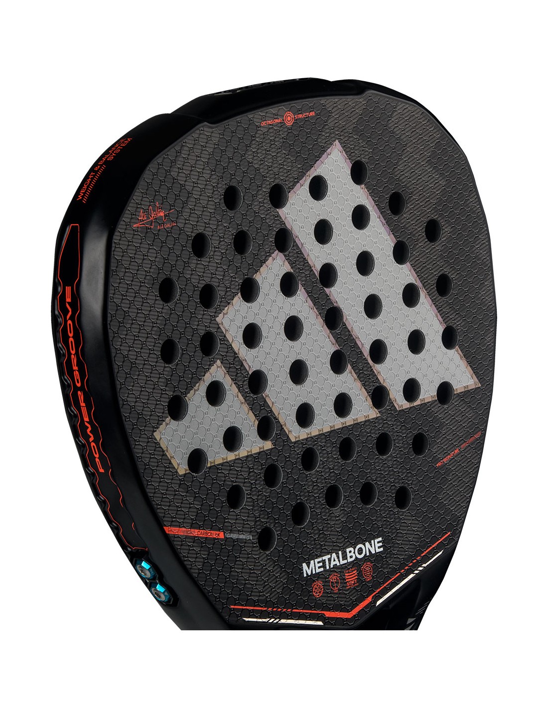 De Adidas Metalbone 3.4 2026 is één van de nieuw ontwikkelde modellen uit de 2026 collectie van Adidas, speciaal gemaakt voor Ale Galán. Met het innovatieve Weight & Balance System, maakt het nauwkeurige aanpassing mogelijk om aan uw speelstijl te voldoen. De verlengde Power Extra Grip-handgreep, gecombineerd met het lage polyhedronontwerp van het frame en de kern, levert uitzonderlijke kracht. Met zijn diamantvorm, hoogwaardige materialen en Power Groove-rail in het racketframe, biedt dit racket een ongeëvenaard prestatieniveau.