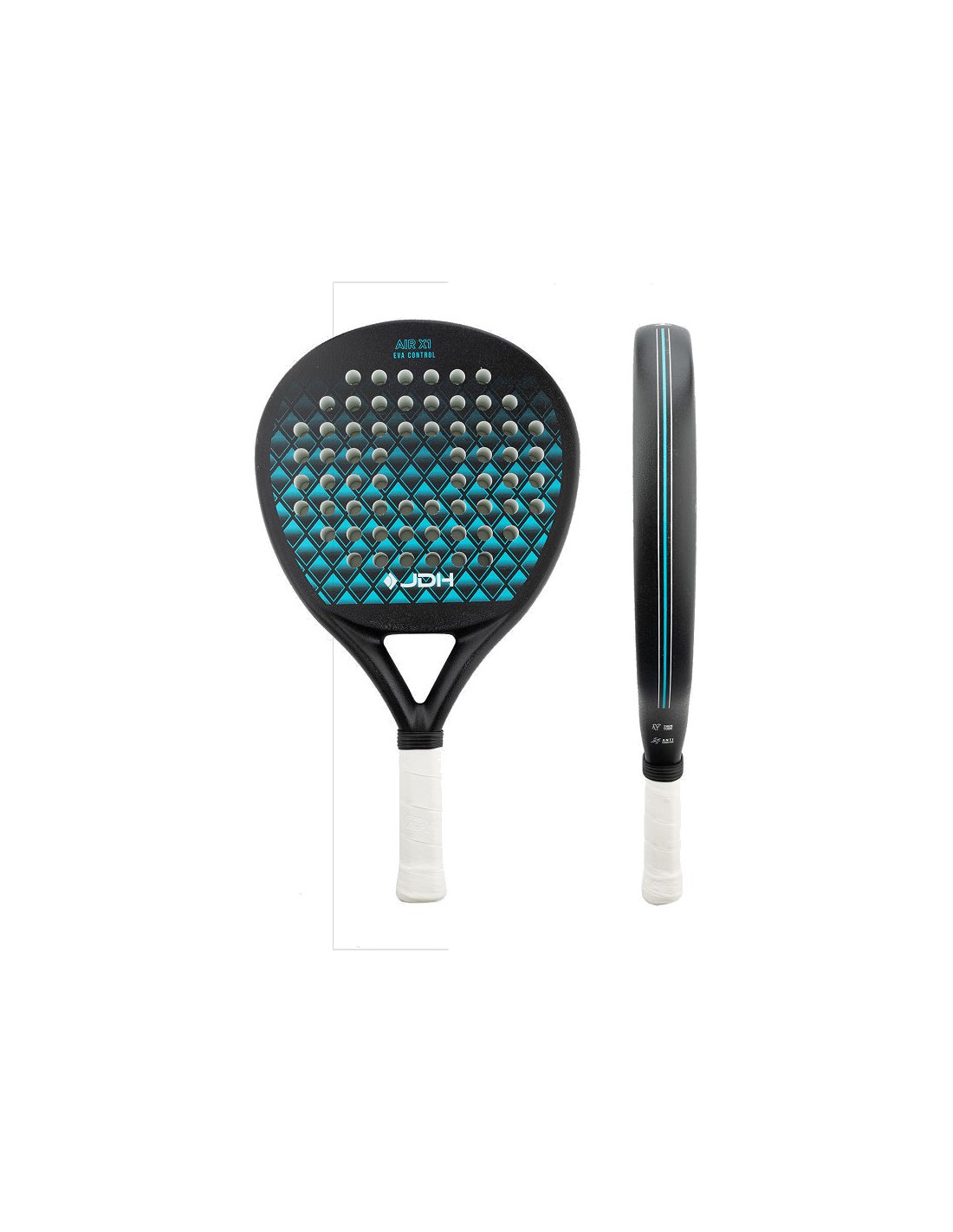 JDH Air X1 is een veelzijdig en comfortabel padelracket, perfect voor spelers die zoeken naar een gebalanceerde combinatie van kracht en controle. Dankzij de druppelvormige bladvorm ligt het sweetspot iets hoger op het blad, waardoor je meer power uit je slagen kunt halen zonder in te leveren op precisie. Met een gewicht tussen de 360 en 375 gram is dit racket licht genoeg voor snelle bewegingen en snelle slagenwisselingen, maar stevig genoeg om stabiliteit en kracht te bieden bij aanvallende slagen. Het Carbon Composite slagvlak biedt een goede mix van duurzaamheid en vergevingsgezindheid. De 11-13 Poly Foam kern zorgt voor een zachte, comfortabele feel en goed balcontact, met minimale trillingen voor meer comfort.