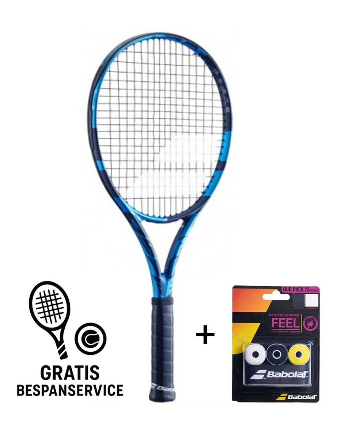 Actie: De Babolat Pure Drive (2021) wordt gratis bespannen met een hoogwaardige Novomatch snaar naar keuze. Novomatch snaren bieden topprestaties en zijn uitstekend vergelijkbaar met andere premium snaren. (Liever een premium snaar van een ander merk? Dat kan tegen een kleine meerprijs).
