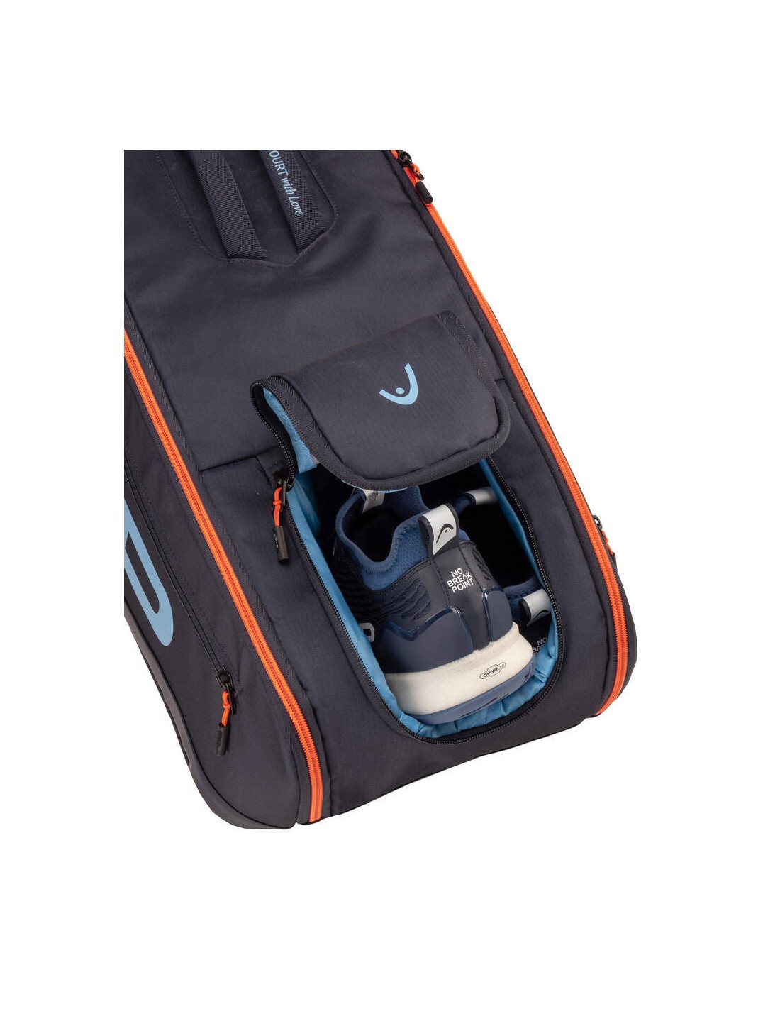 De PRO RACQUET BAG L NV is gedragen en geïnspireerd door Jannik Sinner, en heeft een speciaal ontwerp met persoonlijke touch, waaronder oranje ritsen die verwijzen naar het rode haar van de Italiaan. De premium en ruime tas, met ruimte voor maximaal 9 rackets, is verkrijgbaar in blauw, de nationale kleur van Italië, en is gedetailleerd met een kleine Italiaanse vlag. Voor extra stijl is de tas versierd met het persoonlijke logo van de HEAD-ambassadeur, dat wordt gecreëerd door een ‘J’ voor Jannik te combineren met een ‘S’ voor Sinner en een berg, die allemaal samen op een vos lijken, wat zijn bijnaam is. Het ontwerp bevat ook de boodschap: ‘From Center Court with Love’. De binnenkant van de tas, de mesh is gedetailleerd met kleine vossen.