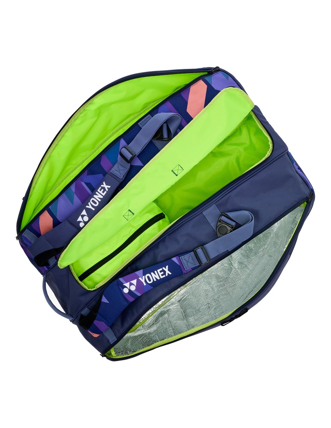 Deze tas heeft 4 hoofdcompartimenten waar een totaal van 12 rackets in opgeborgen kunnen worden. Deze ruimte kan natuurlijk ook gebruikt worden voor andere doeleinden zoals een opbergplek voor tenniskleding en andere tennisbenodigdheden. Een van de compartimenten zijn thermisch geïsoleerd, om je snaren te beschermen en je drinkflessen lekker koel te houden. Daarnaast heeft de tas een schoenenzak met ritssluiting, een groot én een kleine accessoirevak.